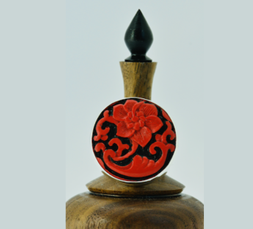 Gorgeous large floral carved Cinnabar set in sterling silver. The stone is